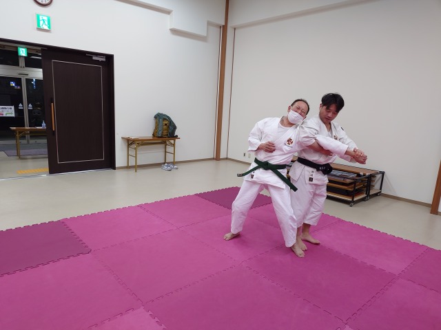 鎮魂行、基本練習、連続複数法系修練、昇級・昇段練習をしました。特に、受け身を中心に。