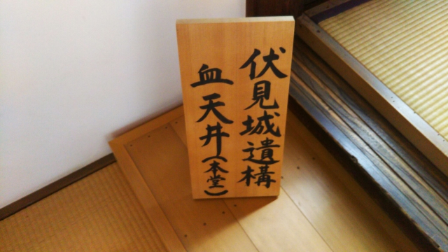 ついた血ぬりの付いた床板を移築して貼られており”血天井”と言われの通り足形がはっきり