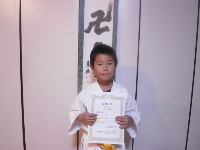 そうくんは初めての試験で、きんちょうして技をおわすれしたり、失敗したりでバタバタでしたが、その時の気持ちを忘れずに次の7級の試験ではもっと上手にできるように修練してくださいね。