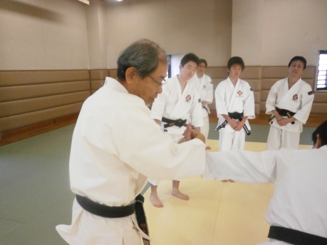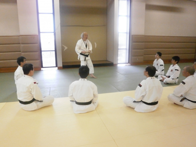 田邊先生、武内先生をお迎えして、技術講習と講義を実施して頂きました。技術では守主攻従をからめた指導をして頂き、技を掛けるにおいて常に相手からの反撃や抵抗を念頭において対応していかないと不敗の体制は絵に描いた餅となるとの指摘に一同納得でした。