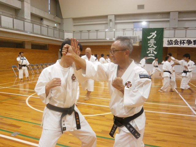 当日の午前中に、本部からお越しいただいた少林寺拳法連盟会長の川島一浩先生による技術講習が行われ、参加した拳士達が真剣なまなざしで修練してました。はじめて川島会長の技術を直接目の当たりにした拳士は感動しきりでした。