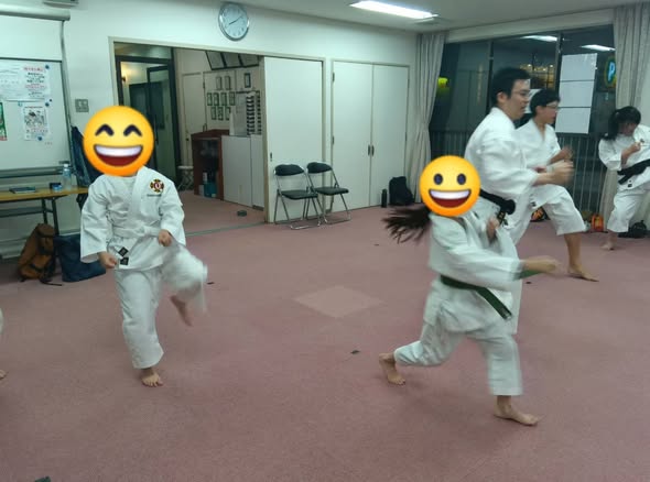 本日は作務、鎮魂行、法話、諸連絡事項、準備運動、基本突き、前進突き、水分補給等短時間休憩、技法の修練の進行です。