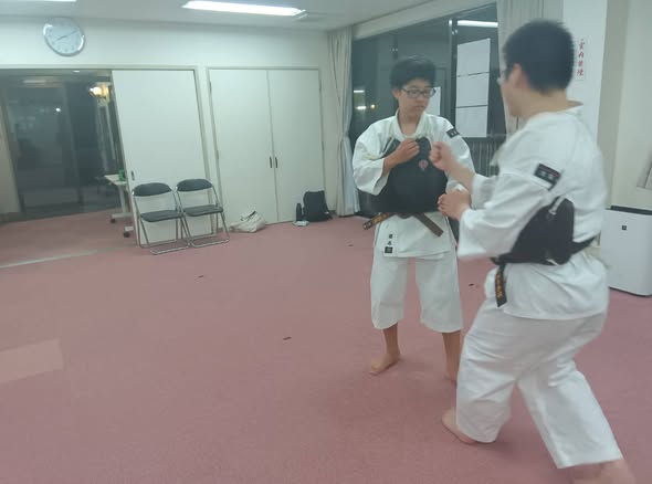 特に前進突き時には相対、胴装着による突き、蹴りを実施し当身の五要素を中心に汗を流しました。