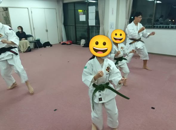 本日は作務、鎮魂行、法話、諸連絡事項、準備運動、基本突き、前進突き、水分補給等短時間休憩を挟み技法の修練の進行です。