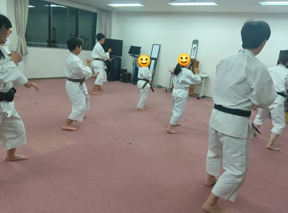 修練は作務、鎮魂行、法話、諸連絡事項、準備運動、基本突き、前進突き、水分補給等短時間休憩に続き技法の修練の通常進行です。