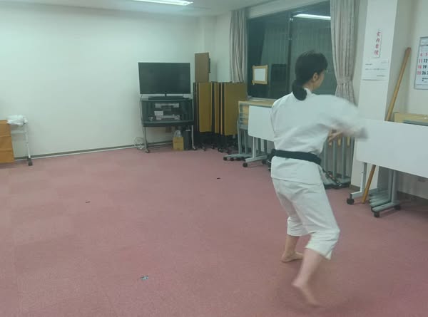 本日は作務、鎮魂行、法話、諸連絡事項、準備運動、基本突き、前進突き、水分補給短時間休憩の後技法の修練と続く通常の進行です。