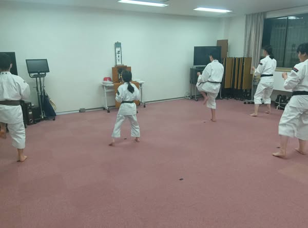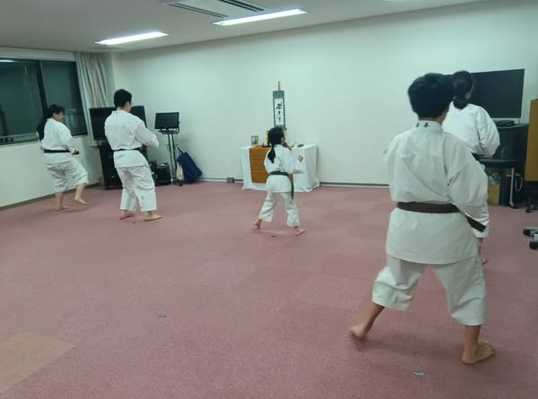 本日は作務、鎮魂行、法話、諸連絡事項、準備運動、基本突き、前進突き、水分補給短時間休憩の後資格別に技法の修練に続く通常の進行です。